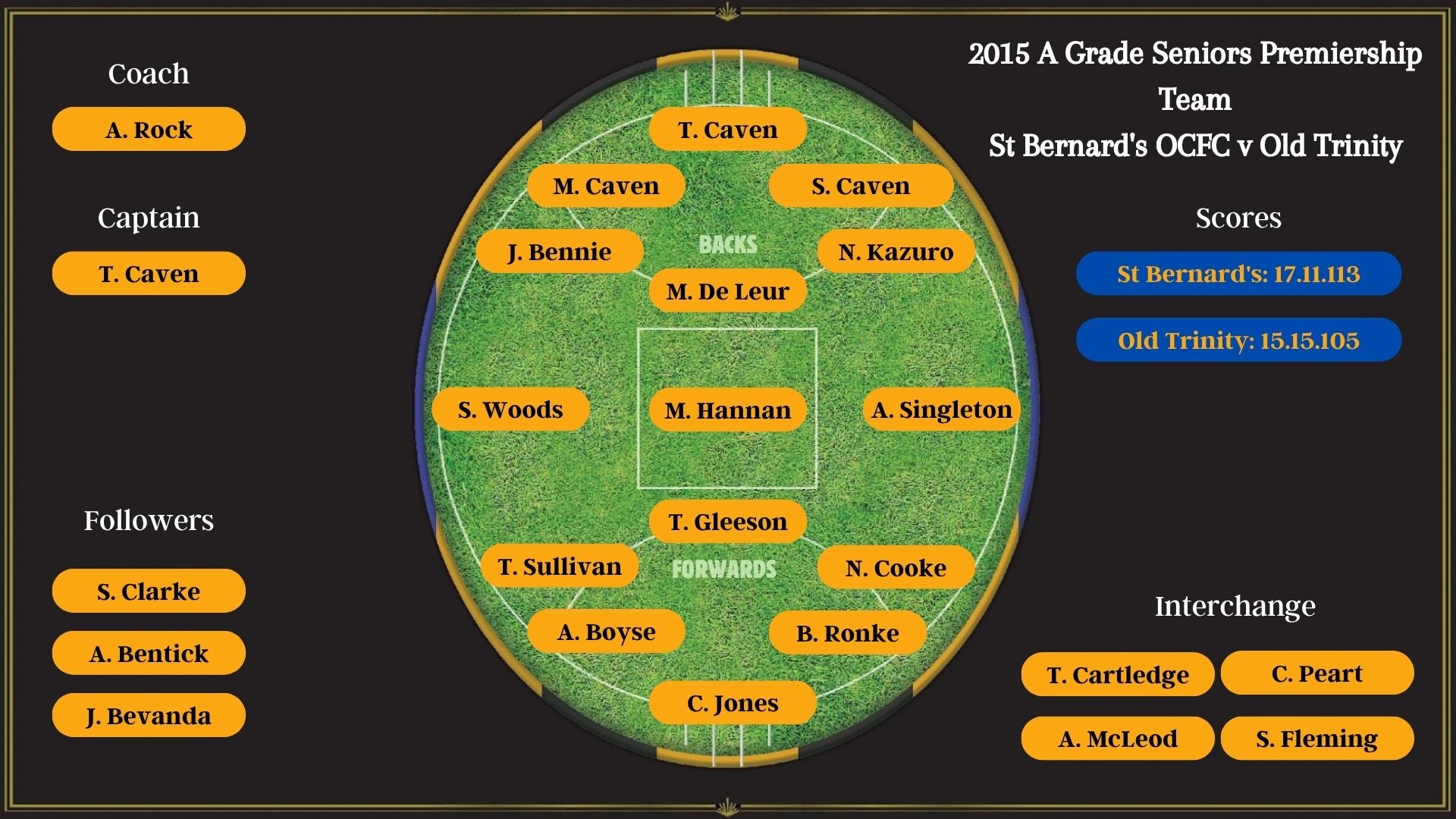 In front of thousands of vocal fans, St Bernard’s shot out to a 16-point lead by half time, with clean ball use and six goals between Chad Jones and Alex Boyse. However, and as they have done all season, the T’s came out of half time firing, kicking five straight goals during the third and leading by six points going into the final quarter. Heading into a mouth-watering final term, it was end-to-end football, with neither side giving an inch. A five-goal to two final term saw the Snowdogs hit the lead and hold on to claim their third Premier Section Premiership in the club’s history. Mitch Hannan was named Jock Nelson medallist as the best player on the ground for his outstanding performance, while Boyse finished the game with four majors to his name. It was a seesaw battle between the two best sides this season and what unfolded will be remembered for years to come as one of the greatest William Buck Premier Grand Finals ever seen.